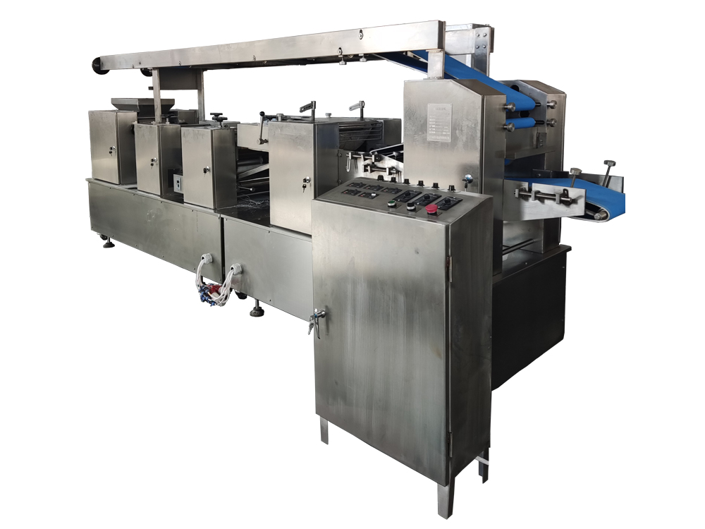 3、設(shè)備為變頻控制,每一道壓輥都采用單機(jī)驅(qū)動,通過測距傳感器,實現(xiàn)自動面帶張緊控制,多輥聯(lián)動??焖佥p松地制作大量面皮,提高生產(chǎn)效率。