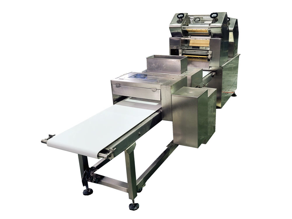 全自動鮮濕面生產(chǎn)線是由真空拌粉機(jī)、自動調(diào)速熟化機(jī)、復(fù)合壓延機(jī)、多組壓延機(jī)、面條成型機(jī)、風(fēng)冷線以及分切撒粉輸送機(jī)等組成。